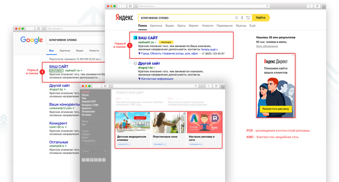 - нахождение на 1 странице поисковых систем дает органический трафик, то есть потенциальных Клиентов